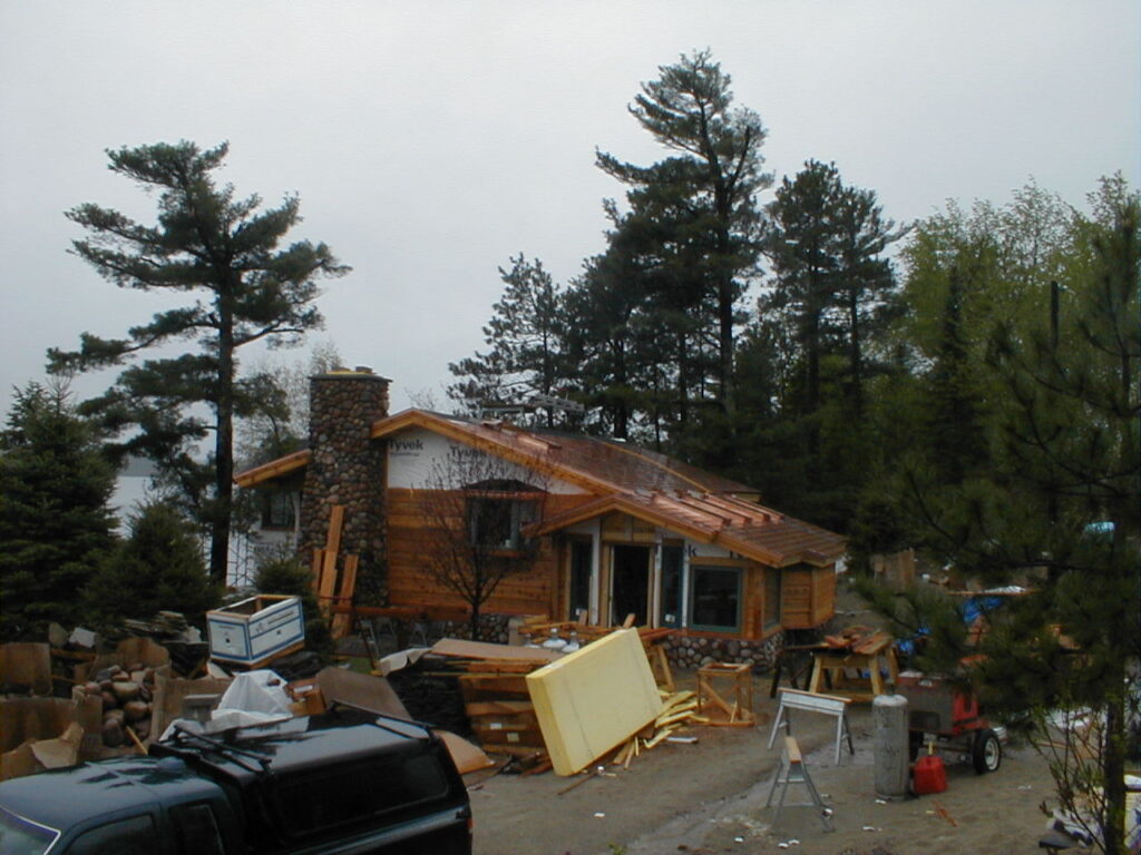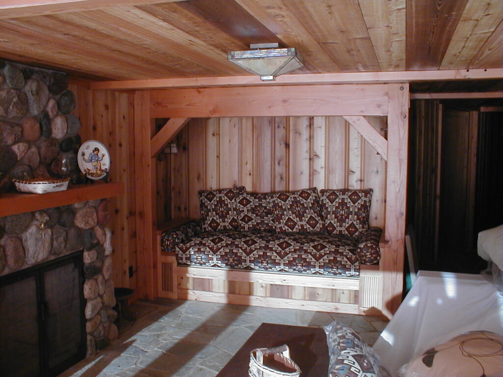 Here are some pictures of the interior of the finished project. There was a lot of custom copper work and milling of custom paneling and Douglas fir beams. Stone floors, granite countertops. Stone siding and fireplaces and custom built Doug fir and quarter sawn white oak cabinets.