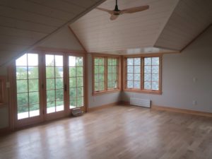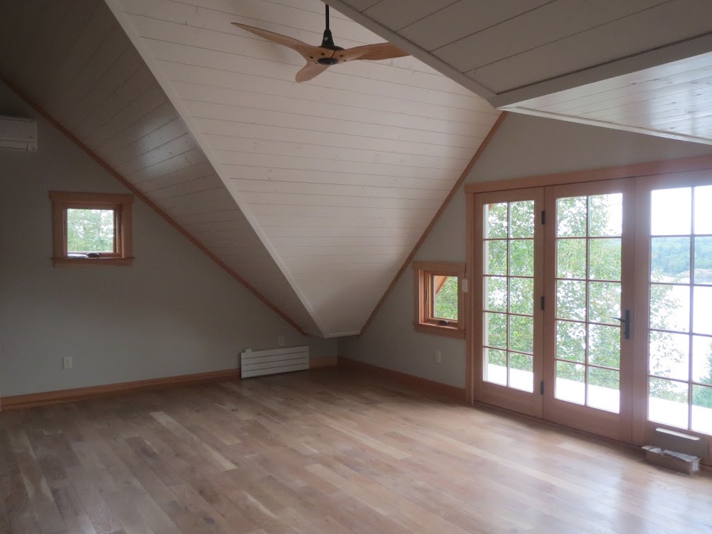 A few shots of the master bedroom area on the 2nd floor… amazing detail work with the Doug Fir trim, the rustic painted wood ceiling and the oak flooring.