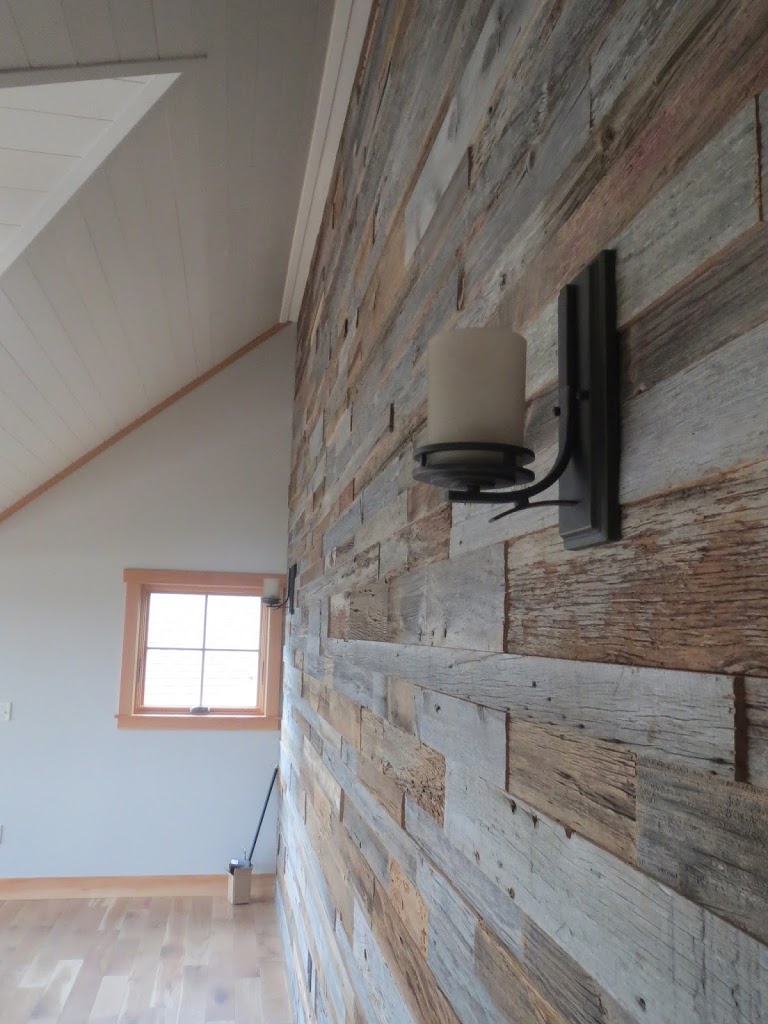 One wall of the master bedroom was done with reclaimed barn wood. A nice touch.