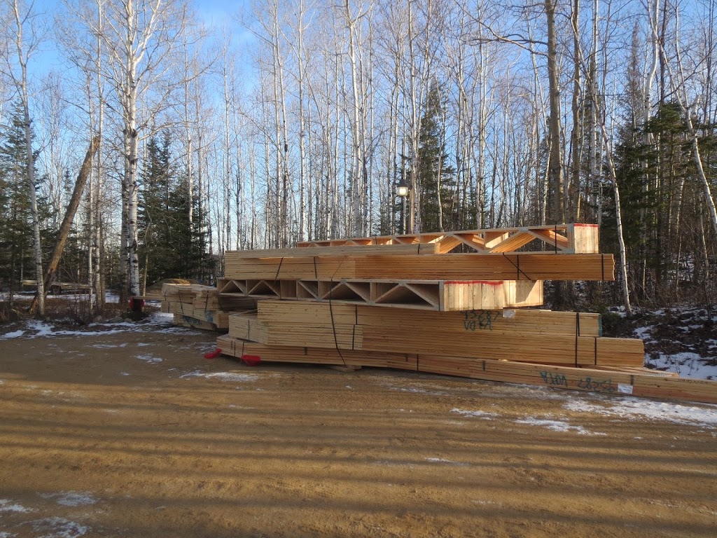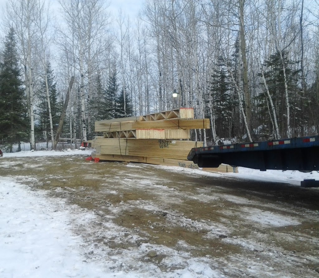 …and one exciting day, the roof and floor trusses arrived. We made sure the hill was sanded well and we had a great “can do” sort of a truck driver who strapped the old tire chains on and backed right in there and slid them off the back of his truck…